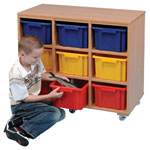 This 9 bay cubby unit from Cicada is a fantastic piece of furniture providing excellent storage and space for the classroom via the 12 wicker baskets. Manufactured to a high standard using beech faced 18mm MFC, this attractive unit is designed to provide versatile and flexible storage, making it easier to maintain a tidier classroom. The unit comes ready assembled with 4 castors (2 locking) for complete mobility.