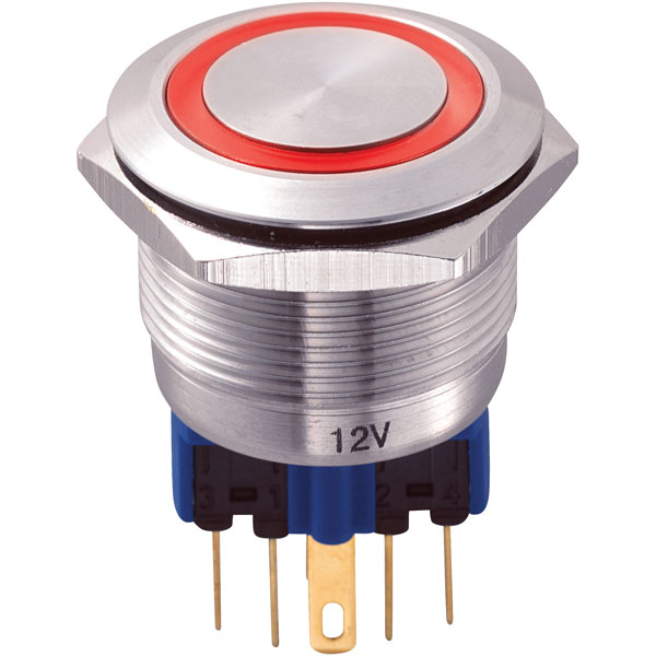 These 22mm vandal resistant SPST, On-On switches are available with a choice of 2 coloured LEDs.