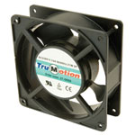 Aluminium framed, mains voltage AC cooling fan fitted with sleeve bearings.