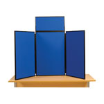 This cost effective desktop display stand features 3 large panels for you to attach posters with Velcro and a header panel for you to display your company name.