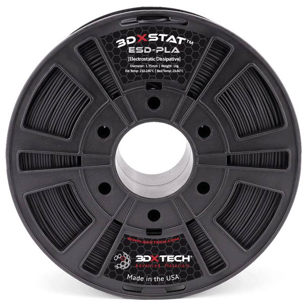 3D Xtech PLA2030750BK0 is a high-performance 3D printing filament engineered for compatibility with Fused Deposition Modelling (FDM) technologies. This 1.75mm diameter filament is composed of polylactic acid (PLA), a biodegradable thermoplastic derived from renewable resources, and is supplied on a 750g spool. Designed to enhance the versatility and precision of 3D printing projects, the black filament demonstrates excellent layer adhesion and surface finish quality, making it suitable for producing detailed prototypes, custom components, and practical models. The filament's reliable conductivity and electrostatic discharge (ESD) properties make it particularly valuable in electronics applications, where it can help mitigate static build-up risks. Its consistent diameter and high dimensional accuracy ensure stable and repeatable printing outcomes, which are essential for various engineering and manufacturing applications.