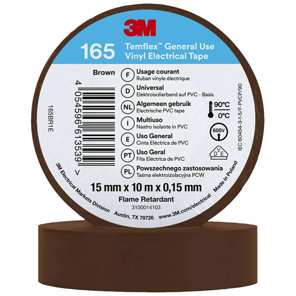 3M 165BR1E Temflex™ 165 Electrical Tape Brown 10 m x 15 mm 1 pc