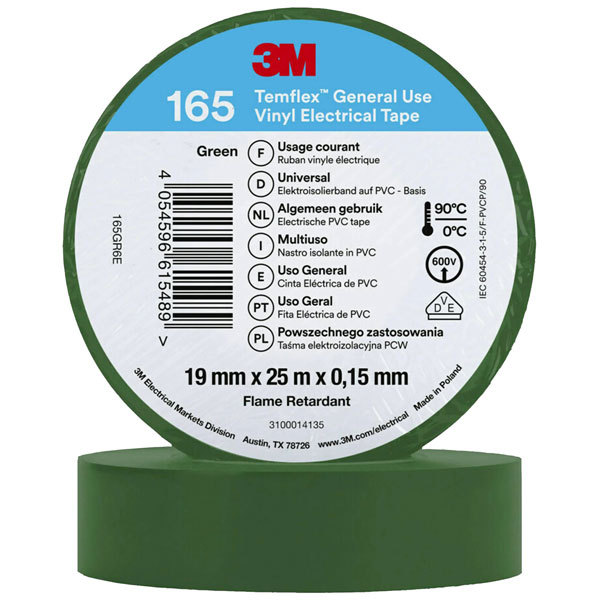 3M 165GR6E Temflex™ 165 Electrical Tape Green 25 m x 19 mm 1 pc