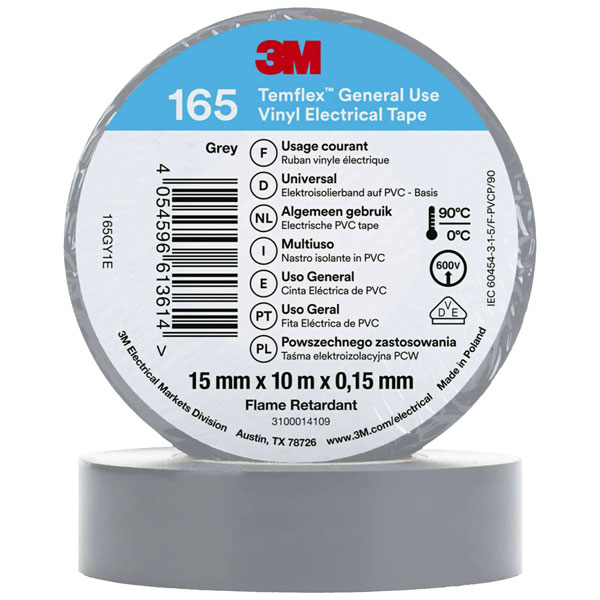3M 165GY1E Temflex™ 165 Electrical Tape Grey 10 m x 15 mm 1 pc