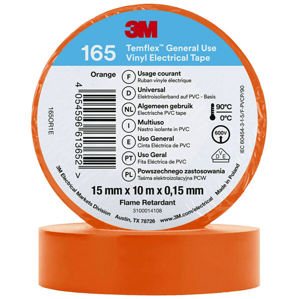 3M 165OR1E Temflex™ 165 Electrical Tape Orange 10 m x 15 mm 1 pc