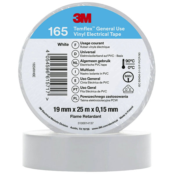 3M 165WH6E Temflex™ 165 Electrical Tape White 25 m x 19 mm 1 pc