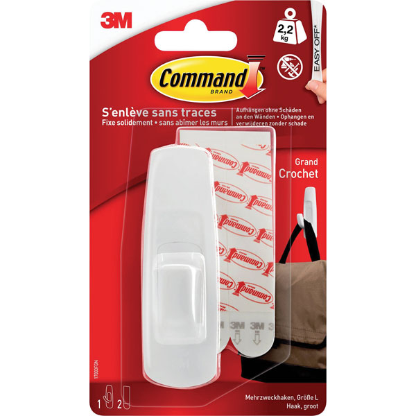 The Command™ Large Universal Hooks are an innovative solution for hanging heavier items such as coats, towels, bathrobes and many other household items. The strips ensure a strong hold and can be removed again cleanly – damage-free thanks to 3M technology.