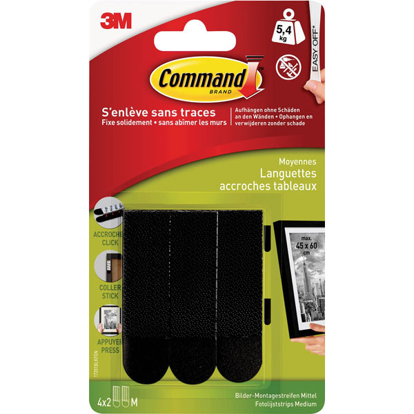 Medium black Command™ image mounting strips are our innovative solution for the safe and damage-free hanging of your framed photos and images. They ensure a strong hold and can be removed without leaving any residue – damage-free thanks to 3M technology.