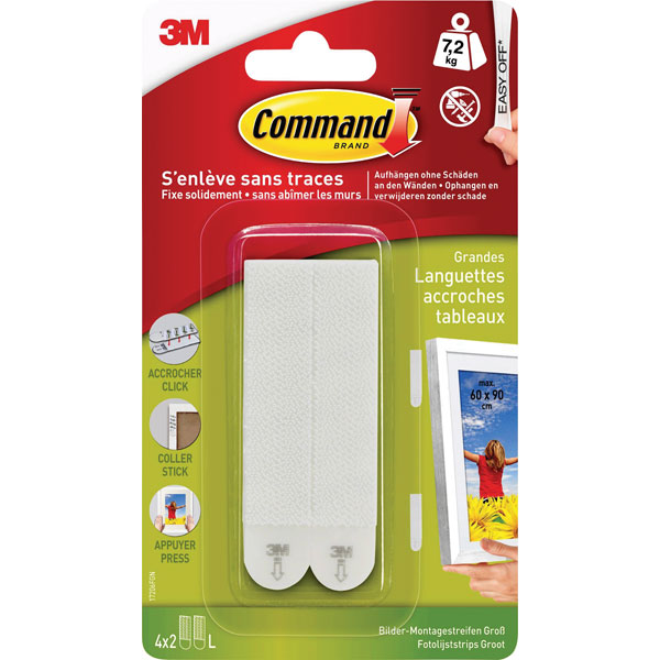 Large Command™ image mounting strips are an innovative solution for secure and damage-free hanging of larger and heavier picture frames and graphics. They ensure a strong hold and can be removed without leaving any residue – damage-free thanks to 3M technology.