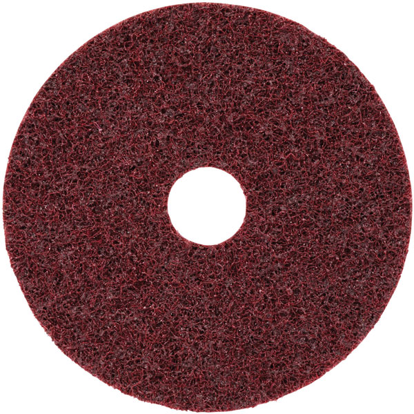 The Scotch-Brite™ fleece disc is a durable fleece disc for the first step in cleaning, cross-fading, deburring and finishing. The discs are powerful on contoured or uneven surfaces without grinding and damaging the workpiece.Our fast cutting Scotch-Brite™ fleece disc is ideal for Ideal for the first step in cleaning, cross-fading, deburring and finishing.The open structure of our discs ensures a cool finish and is dust resistant, which results in a longer service life. The evenly distributed aluminum oxide abrasive offers high abrasion for consistent surface quality. Our nonwovens work with aluminum oxide abrasives, which is the preferred choice for professional users in the industry due to the high abrasion and long service life. The abrasive is robust and durable, and it breaks down during machining so that fresh cutting edges are continuously exposed for a more efficient cut, while conventional abrasive materials such as grenade wear off quickly during use. Aluminium oxide mineral is stable, robust and offers high abrasion and low heat accumulation. It has a wide range of applications for grinding and finishing – on a wide range of materials, in both wood and metal processing, including iron alloys.Scotch-Brite Industrial abrasives are unique surface preparation products where abrasives are mixed with nylon or synthetic nonwovens to produce a system of abrasives that delivers consistent results throughout the life of the product. The open, structured material provides a cool finish and is dust-resistant, so that the abrasive retains its high ablation power by reducing the adhesion of the fibres.