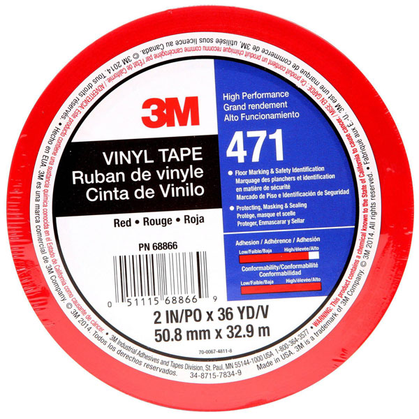 The 3M™ PVC adhesive tape 471 is often used for marking danger zones and corridors, Covering in painting operations, colour markings, decorative strips and more. This versatile adhesive tape, which has a PVC backing material with rubber resin, withstands scratches, abrasion, weathering and is therefore very durable. The 3M™ PVC 471 adhesive tape adheres to a wide range of surfaces when in contact and can therefore be applied quickly without dripping, drying or cleaning, and can be removed cleanly without leaving any adhesive residue. This PVC tape is very adaptable, so it can be easily applied to curved surfaces as well as rough or uneven surfaces.