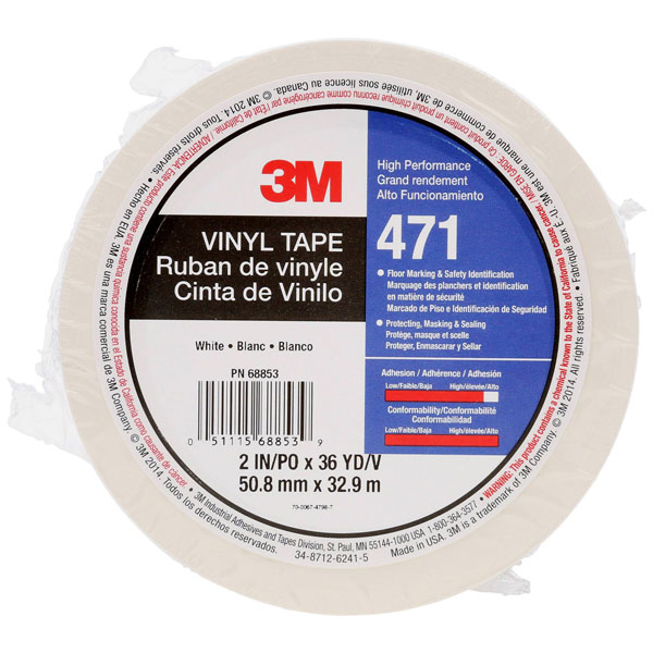 The 3M™ PVC adhesive tape 471 is often used for marking danger zones and corridors, Covering in painting operations, colour markings, decorative strips and more. This versatile adhesive tape, which has a PVC backing material with rubber resin, withstands scratches, abrasion, weathering and is therefore very durable. The 3M™ PVC 471 adhesive tape adheres to a wide range of surfaces when in contact and can therefore be applied quickly without dripping, drying or cleaning, and can be removed cleanly without leaving any adhesive residue. This PVC tape is very adaptable, so it can be easily applied to curved surfaces as well as rough or uneven surfaces.
