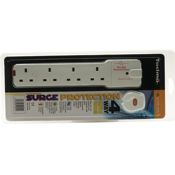 Buy 4-Way Surge Protected Socket 2m – a 13A trailing extension socket fitted with metal oxide semi-conductors to protect electronic equipment from surges, spikes etc.