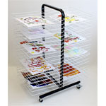 These Large 40-Shelf Mobile Drying Racks are designed for drying and storing paintings and other artwork up to A2 size. Supplied with 40 plastic-coated wire shelves for easy cleaning these double-sided racks can be easily moved around the classroom or out of the way at the end of a lesson. Lockable castors mean the racks can be fixed securely in position.