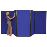 A folding jumbo five panel display system that is simple to set up and use. Supplied in with a PVC frame with panels covered in blueberry Nyloop fabric.