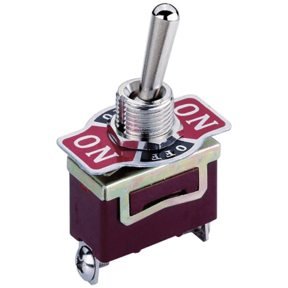 TRUCOMPONENTS 751444 Toggle Switch Panel Mount On/Off/On SPDT Screw Terminals - Power switches with a centre "off" position are frequently required. Can be used as a pole-reversal switch (left-stop-right). Incl. aluminium sign.