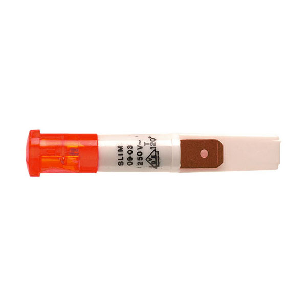 A 9mm polycarbonate push fit, round 240V red neon indicator requiring a single fixing hole for fast installation.