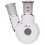 A PLUS Round Bottom Flask Two Neck 50ml Centre Joint 14/23 Angled Joint 14/23