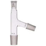 This glass still head adaptor from A PLUS is suitable for use in connecting a flask with a condenser in a laboratory distillation assembly.