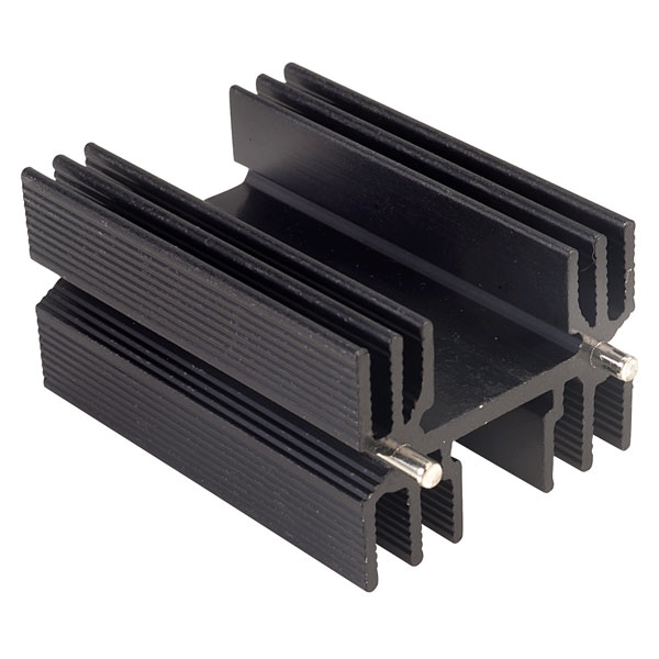 A compact, high power dissipation, vertical mounting, extruded heatsink with solderable fixing pins, designed to accommodate a single TO-220, TO-218 or TO-247 package either via a separate clip, or by a mounting hole.