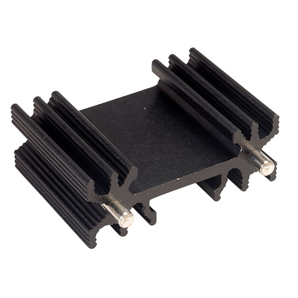 A 11.4°C/W compact, vertical mounting extruded heat sink with solderable fixing pins.