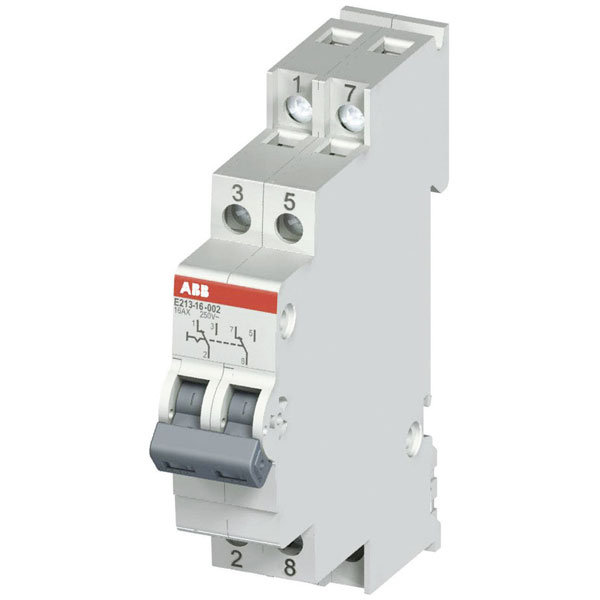 ABB manufactures the DT switch 16 A, featuring 2 change-overs and a capacity of 250 V AC. The switch is ideal for controlling electrical circuits in residential and commercial settings. Known for reliability, it is suitable for use in switchboards and distribution panels.