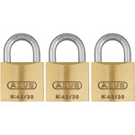 The ABUS ABVS11822 Brass Padlock 45mm Set of 3 Pieces 45/30 Triples has been manufactured to a high standard with a lock body made from solid brass and inner components made from corrosion-free materials. The shackle has been made from hardened steel, while the precision pin cylinder has mushroom pins (as of 30mm).