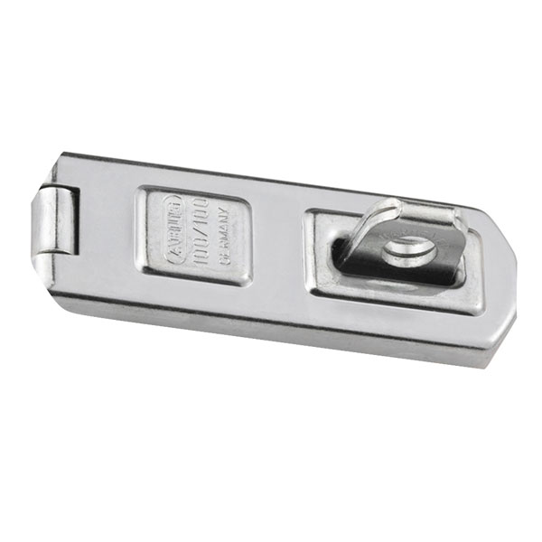 100 Series hasp and staple with concealed hinge pin and concealed screw heads, corrosion protected.