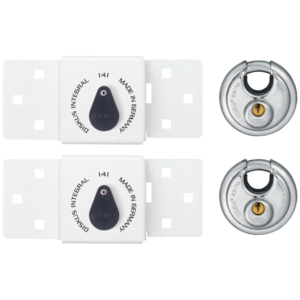 The ABUS 141/200 Diskus® Integral Van Lock White Twin Pack is ideal for securing valuables/goods of great value or at a very high risk of theft. All fixings are included to ensure a quick and easy installation. Contains:
