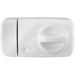 The ABUS 32702 Additional Door Lock 7010 W EK White is a 2-way radio door lock featuring additional double stroke bar with outside key cylinders and rotary knob protecting your door three times. The door has an additional mechanical fuse with more than one ton resistance. The additional lock also detects opening attempts and ensures active burglary protection.