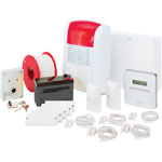 The compact sounder (siren and flashing light) is included in this full kit and has its own reserved tamper zone on the motherboard. In addition to the alarm centre, the heart of your system, the LCD control unit is also part of the full kit. The system can be programmed via the control unit and may be activated or deactivated via code or chip key. The connection is made via 4-wire bus wiring.
