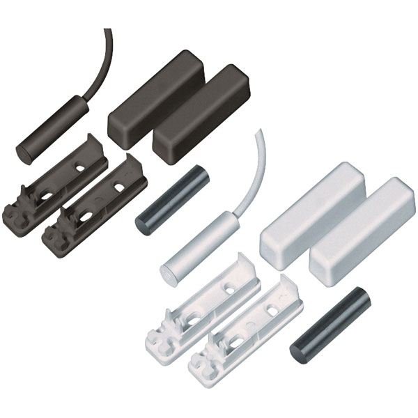 The electric circuit of this NC opening detector is normally closed (NC). If the distance between the reed and the magnet increases, the circuit is broken and an alarm reported. The optimum installation location is the middle of the door or window frame. It can also be fitted to the bottom of the window frame if a particular window with a magnetic contact is to be tilted open. The detector is suitable for both flush and surface-mounted installation.