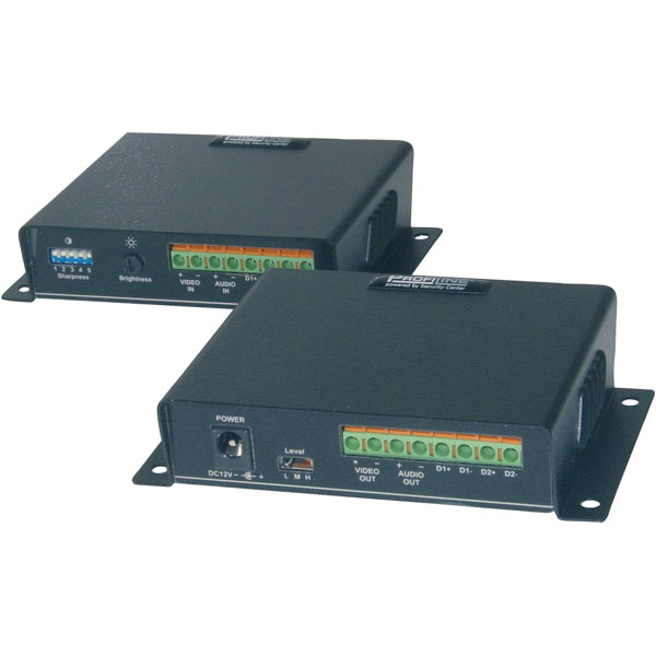 This well designed set also allows two monitors to be connected, with an audio signal transmitted to one of the two monitors. The modules are connected by a twisted pair cable or an existing 2-core copper wire (e.g. a telephone cable), with a maximum distance between the two modules of 1500 meters.