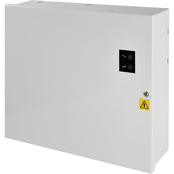 This switching power supply is low in power consumption and high in efficiency, making it ideal for indoor use. A lid contact allows monitoring the device and protecting it from potential tampering activities, while pre-cut perforations on the side of the housing enable customized openings for tidy wiring. The LED control indicator informs you constantly about the state of the power supply unit. The eight outputs are individually fused and protected from overload and short-circuit.