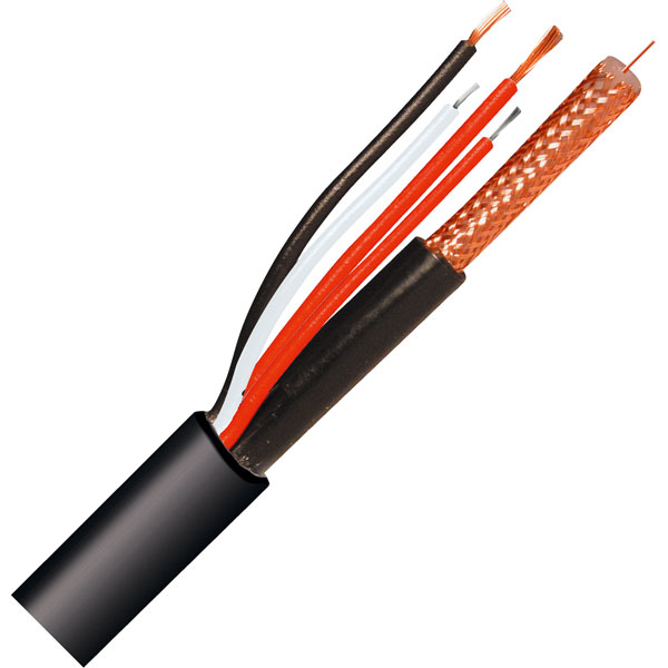 In addition to the video cable (RG59), the cables for the control data (2 x 0.22mm²) and the power supply wires (2 x 0.75mm²) are already integrated. The video triplex cable is suitable for outdoor use the cable resistance is 75 ohm.