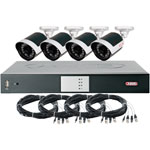The ABUS TVVR30403 Outdoor Surveillance Set with Four Cameras contains everything you need for a cost-effective start in the world of professional outdoor surveillance using four cameras during day or night. This starter package contains a compact digital recorder with H.264 compression and VGA output, plus four IR day/night outdoor cameras and ready-to-use accessories (4 x combi video cables, 4 x 12 V power supply units).
