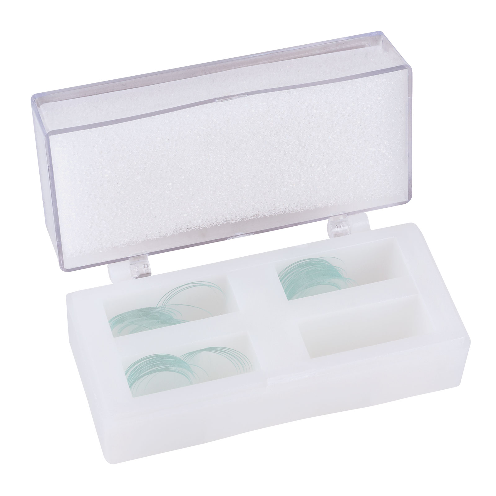 Circular glass cover slips for use with microscope slides.