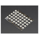 Since the data protocol has strict timing requirements, Arduino is an ideal choice to drive these shields. For testing purposes it's fine to power the shields using the Arduino's 5V line as long as all the pixels aren't on at the same time. Once you're happy you can write to the shield it would be best to connect an external 5V DC power supply and a 2-way terminal block is included for you to solder on if required. The shields are supplied with the fully assembled NeoPixel matrix, a strip of 0.1in. pin headers, a set of 0.1in. pitch female headers with long pins and the 2-way terminal block.