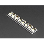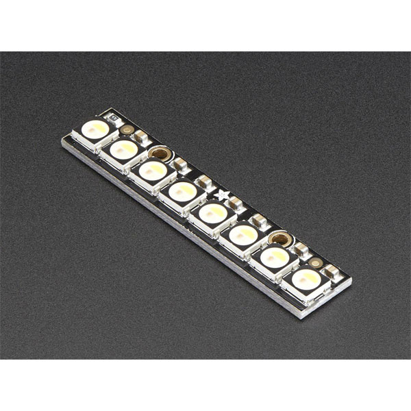The Adafruit NeoPixel Addressable LED Sticks have had an upgrade and now feature 8 x 5050 RGB + Warm White (3000K) LEDs. The white LEDs are very intense and add a new dimension to your NeoPixel projects; with the 8-bit PWM you get 32-bits of colour. These seemingly simple gadgets have triggered an amazing array of creative projects, from watches and compasses to steampunk goggles and more. Each stick has solder pads for 5V DC and Gnd, plus data-in and data-out, using just 1 x GPIO pin on your microcontroller. Simply feed the data-out from one stick into the data-in of another to control them both from the same microcontroller (MCU).
