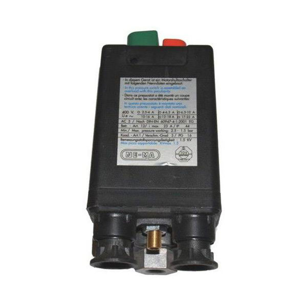 The Aerotec Nema Schalter is a pneumatic pressure switch designed for use with compressors, featuring a 400V, 3-way 3/8 inch connection and a pressure range of 6.3-10 A, with a 1/4 inch outlet. Manufactured by Aerotec, it is a crucial component in regulating and maintaining optimal pressure levels in pneumatic systems. This pressure switch is commonly used in industrial applications to ensure the efficient operation of air compressors.