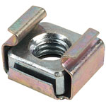 Square cage nut from Affix made from zinc-plated steel suitable for use in rack systems and instrument cases.