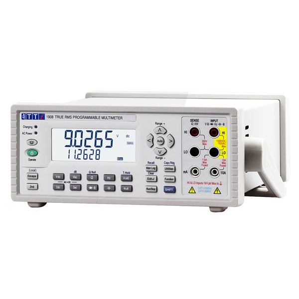 The 1908 is a bench or rack mounting digital multimeter that is designed for serious use by professionals, and is at home in the laboratory, workshop or classroom, as well as in the field. The DMM has functions and features that have been chosen to provide real value and it will carry out a range of measurements, including AC and DC voltage, DC current and True rms AC current, resistance, frequency, capacitance, temperature, continuity and diode test.