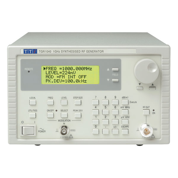 The TGR1040 is a low cost, synthesised RF signal generator with a 10MHz to 1GHz output that incorporates the essential features required for most development, test and service work. It can be operated using either numeric or rotary controls or can be remotely controlled via either an RS-232 or GPIB interface.