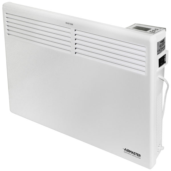Airmaster Digital LCD Controlled Panel Heater with thermostat for temperature setting 5ºC to 30ºC. Easy to use, thanks to the user-friendly LCD display screen and 24/7 programmable timer. It contains a highly efficient sheathed heating element with aluminium diffuser. Silent in operation, slim and compact in size. There is also an anti-frosting function and overheating safety protection. IP24 rated.