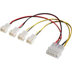 This multi-fan adaptor with speed reduction from Akasa allows 4 fans to be directly operated with this distributor directly at an adaptor-current connection. Thus two fans are supplied with 5V and rotate slowly and quietly - the two others run at 12V with full speed.