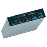 This USB 3.0 card reader with eSATA and USB panel from Akasa is a multi-card reader with USB 3.0 speed, offering five slots for connecting different card formats that can be read and written. This also applies to SD, CF, and MS, while modern high-capacity cards (SDHC/SDXC) are additionally supported.