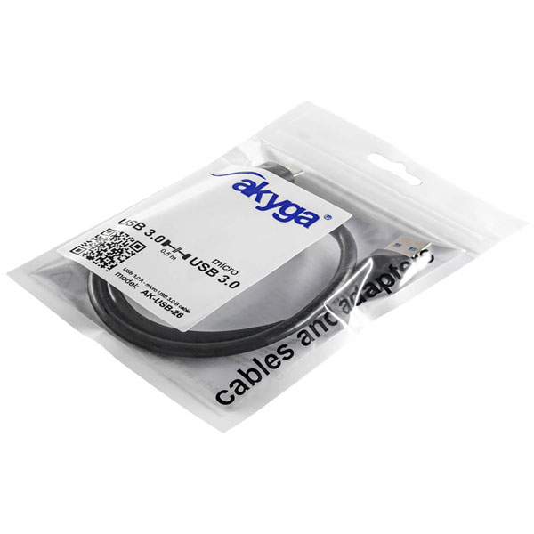 Akyga AK-USB-26 USB cable USB-A to Micro-B 3.0 Black 0.50 m