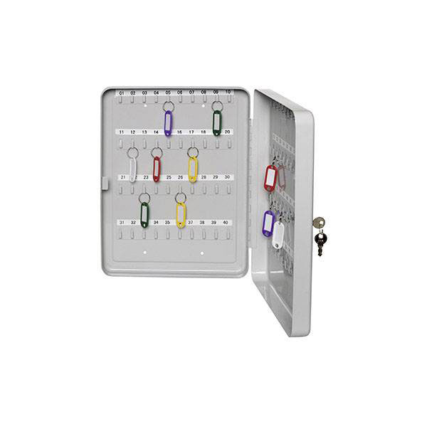 ALCO 891 offers a highly practical key storage solution with its key cabinet featuring 30 hooks. Designed in light grey, this cabinet is part of ALCO's comprehensive range of key boards, key boxes, key strips, and safes, providing secure and organised storage for keys in environments requiring efficient key management. Typical applications include use in office buildings, facilities management, automotive service centres, and hotels, where reliable access control and key tracking are essential. The robust construction ensures durability, and the cabinet is suitable for both wall mounting and standalone use, enhancing its versatility in various settings. Engineered for efficiency, the ALCO 891 key cabinet enables orderly key arrangement and easy identification, optimising operational workflows for facility managers and security personnel.