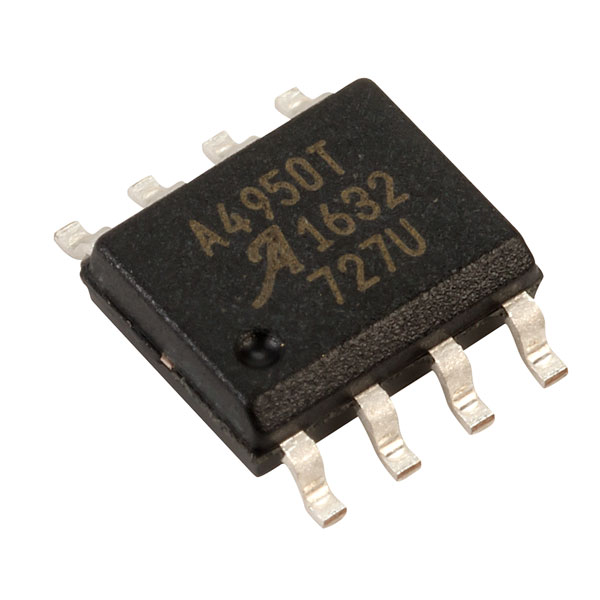 The A4950ELJTR-T is a DMOS-based full-bridge motor driver that is designed for the PWM control of DC motors. The driver is capable of peak output currents to ± 3.5A and operating voltages up to 40V. The speed and direction of motors can be controlled by externally applied PWM control signals via the input terminals and internal synchronous rectification control circuitry lowers power dissipation during PWM operation.