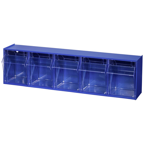 The Allit 464430 VarioPlus ProFlip 5 is a blue box organiser with transparent elements, measuring 600 x 165 x 135 mm. It is ideal for sorting and storing various items with convenient accessibility. This storage container is typically used for organising tools or small components in workshops or garages.